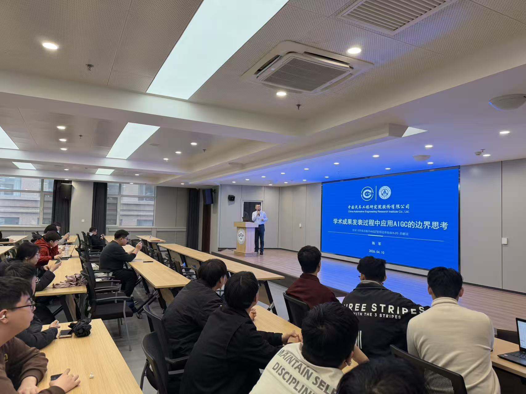 4月10日下午,投注 “薪传砥砺,‘研’途筑梦”研究生学术大讲堂第六十七讲在汽车大楼214报告厅举行。本次活动特邀中国汽研科技创新部资深专员、《汽车工程学报》编辑部主任陈军,作题目为“学术成果发表过程中应用AIGC的边界思考”的学术报告。